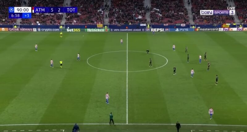 Tim asuhan Diego Simeone tampil agresif sejak menit pertama dan langsung menekan pertahanan Tottenham.