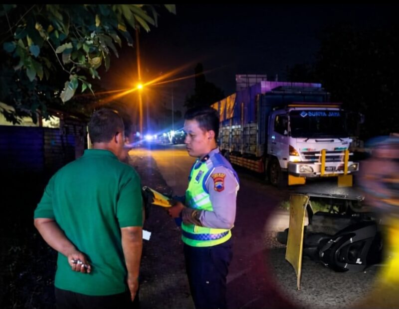 Sepeda motor mengalami kerusakan parah akibat benturan, sementara pengemudi truk dilaporkan dalam kondisi selamat dan kooperatif saat dimintai keterangan.