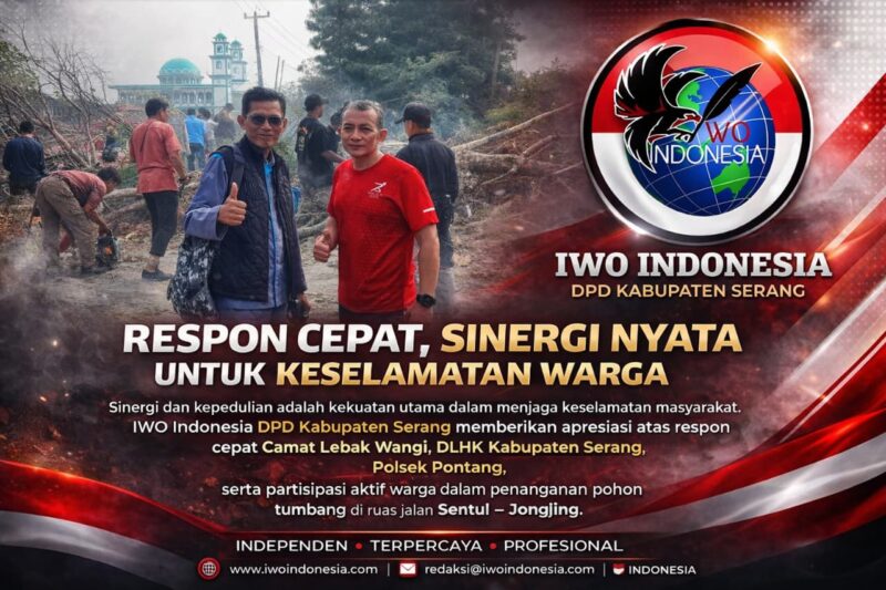 Ketua IWO Indonesia DPD Kabupaten Serang menyampaikan bahwa kecepatan respons tersebut menjadi cerminan nyata kehadiran negara dalam memberikan perlindungan kepada masyarakat.