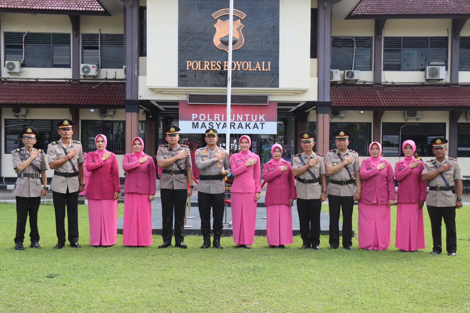 Upacara dipimpin langsung oleh Kapolres Boyolali, Indra Maulana Saputra, dan dihadiri jajaran pejabat utama, para Kapolsek, anggota Polres Boyolali, serta Bhayangkari Cabang Boyolali.