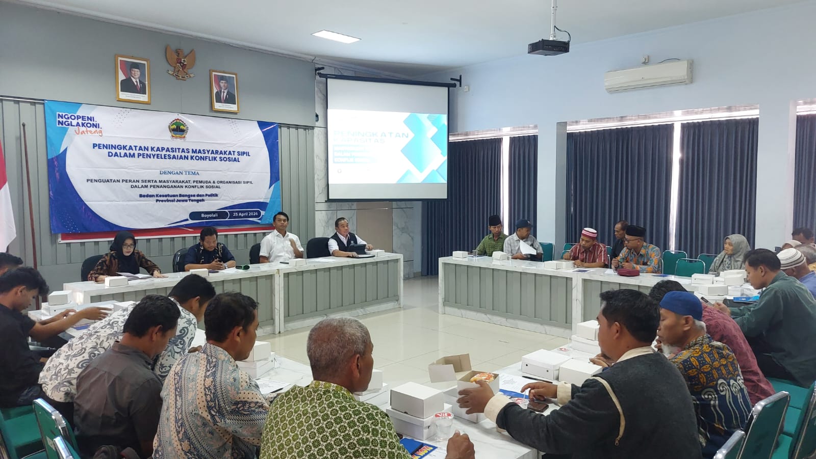 BOYOLALI || viralindonesianews.com– Upaya memperkuat peran masyarakat dalam menjaga stabilitas sosial terus digencarkan di Kabupaten Boyolali. Salah satunya melalui kegiatan peningkatan kapasitas masyarakat sipil dalam penyelesaian konflik sosial yang digelar di Kantor Kesbangpol, Kecamatan Mojosongo, Sabtu (25/4/2026).