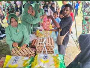 Kegiatan ini menjadi magnet bagi berbagai kalangan, mulai dari prajurit TNI, anggota Persit, hingga masyarakat sipil yang antusias berburu kebutuhan pokok dengan harga terjangkau.